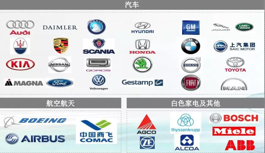 公司為大眾、戴姆勒和寶馬等國際一線汽車生產商提供整車生產線交鑰匙工程、客制化工程設計及各種柔性智能自動化技術支持,是德國三大汽車集團的戰略合作伙伴及核心供應商;為空客、波音和中國商飛C919提供總裝解決方案和部段總裝集成,近年來業務更是向新能源電池、家電行業等一般工業拓展。
